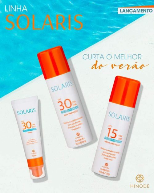 O Protetor solar facial solaris da Hinode é um item que você deve carregar na sua bolsa, a fim de fazer dele seu aliado para prevenir a sua pele das agressões causadas pelos raios solares no dia a dia.